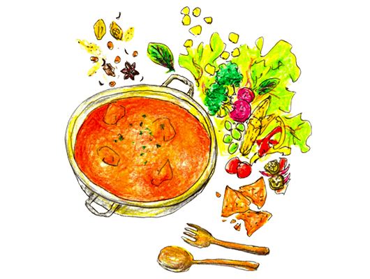- トマトとケチャップの酸味がよい!朝にぴったりな爽やかなカレーに。つぶつぶのコーンを噛むとほんのり甘みがあって美味しいです。