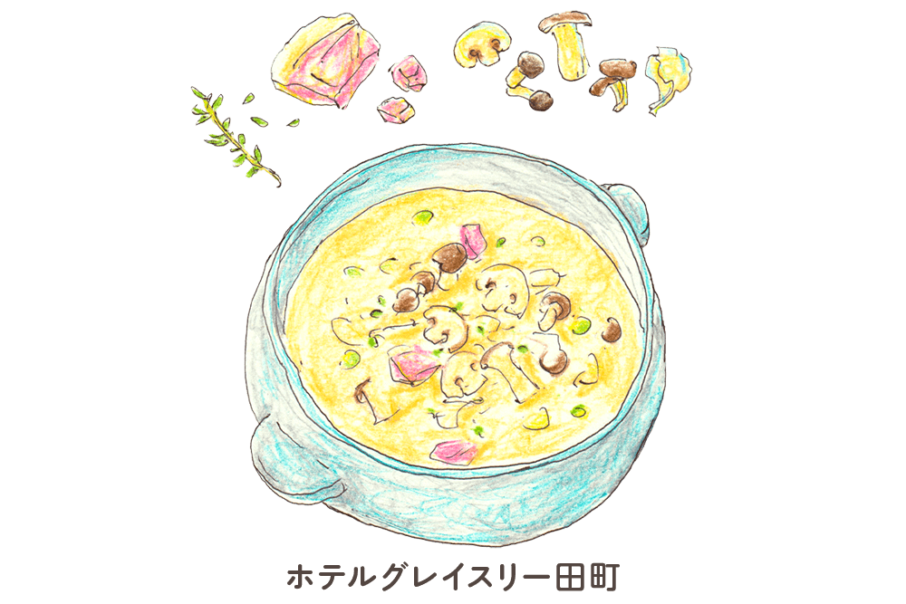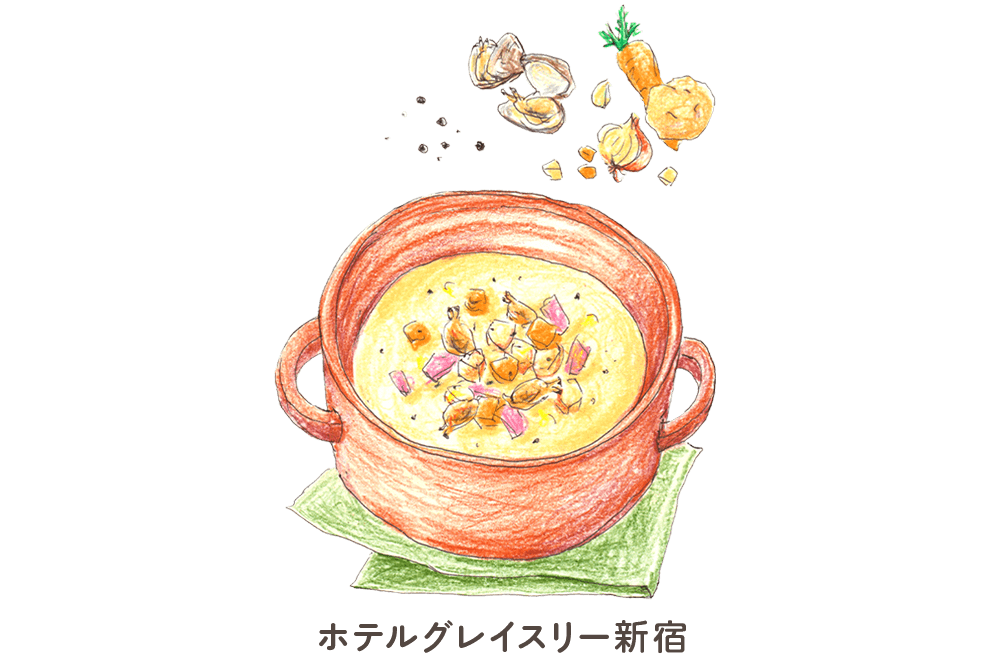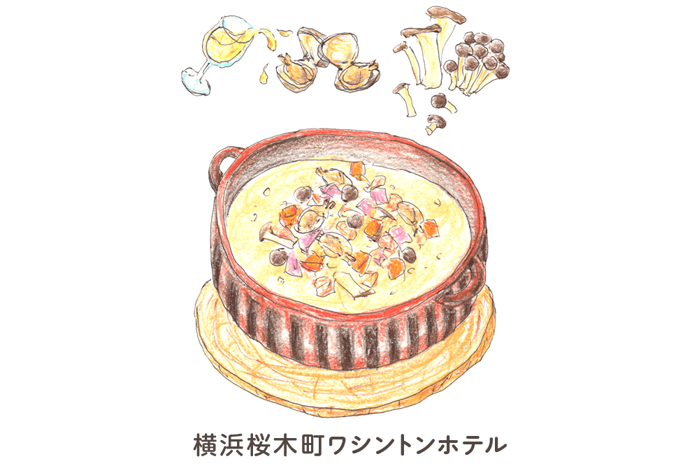 - 従来のクラムチャウダーにキノコをプラスし、さらにアサリの身を白ワインで蒸し煮にすることによって、旨味がぐっとアップし、より美味しく感じられる一品です。