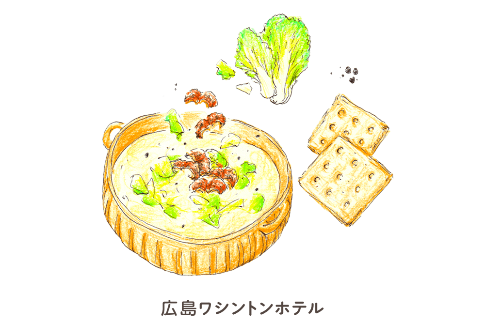 - アナゴ料理で有名な広島。今回は冬野菜の白菜と組み合わせてクリームスープ仕立てにしました。あらびき黒コショウの香りと一緒にお楽しみください。
