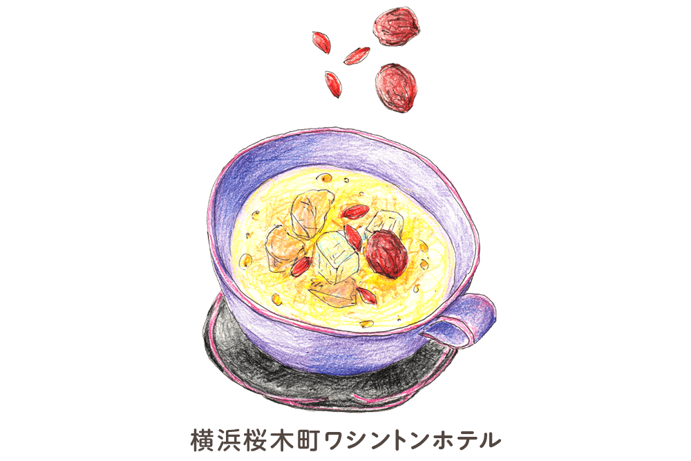 - 化学調味料や食品添加物を一切使わず、食材本来持つ味を楽しんでいただける一品です。さらに、漢方食材としてナツメとクコの実と生姜を加えた、寒い季節にお勧めするスープです。